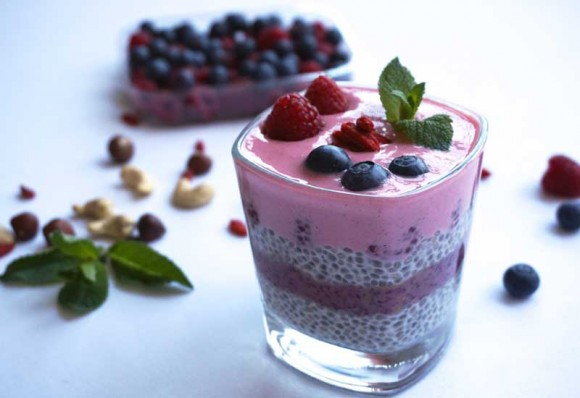 This power pack recipe is rich in energy, cool in nature, & provides with all the nutrients that are necessary to combat heat. Milk and Chia provide with a good amount of protein and berries provides with a good amount of vitamins, minerals and antioxidants. All in one cup, a perfect dessert to serve.